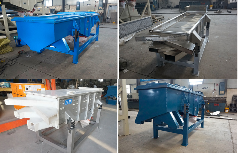 直線振動篩簡稱直線篩,其主要功能是分級、過濾和除雜,以兩臺振動電機為振動源,使物料在篩面上直線跳躍,物料均勻進入篩面,各種規格的物料通過多層矩形篩網產生并從各個出料口排出。